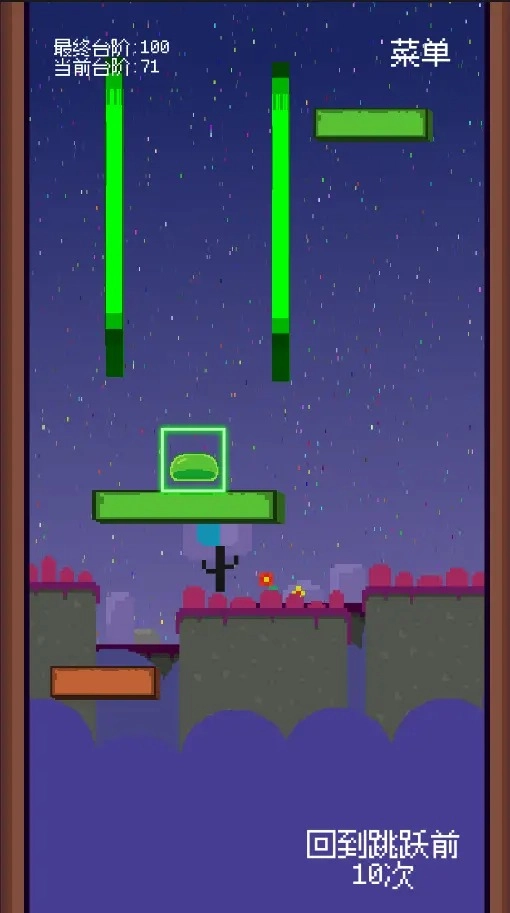 滑动屏幕使史莱姆跳到更高的格子,还需要避开不同的危险;