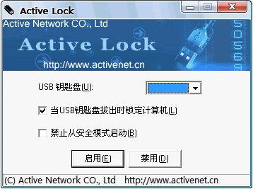 启用Active Lock后,用户需要插入USB钥匙盘才能登录Windows操作系统,拔出U盘时自动锁住电脑。Active Lock采用Windows GINA接口,无需安装驱动,不占用任何资源,也不产生任何进程。