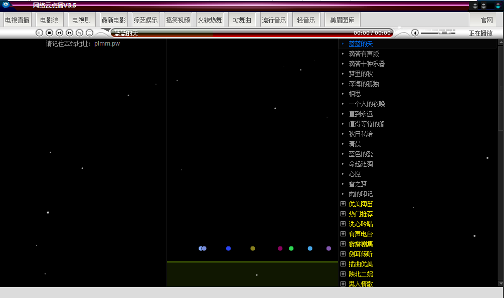 网络云点播 3.5 免费版 网络云点播播放器是国人开发的一款网络电视直播软件,可以免费点播观看电视直播、电视剧频道、电影动漫、综艺娱乐、搞笑视频、舞曲以及音乐等等海量资源,所有内容全部免费任你挑选!