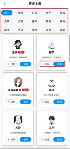 3、选择一位自己喜欢的试听使用