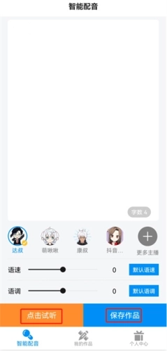 1、智能配音:输入文字秒变语音,上百种音色可供选择,支持音量、语调、语速调节