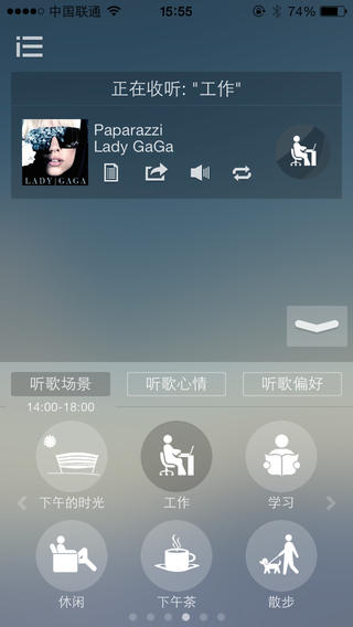 1.选择场景后 复选心情为您推送更加精准的歌曲