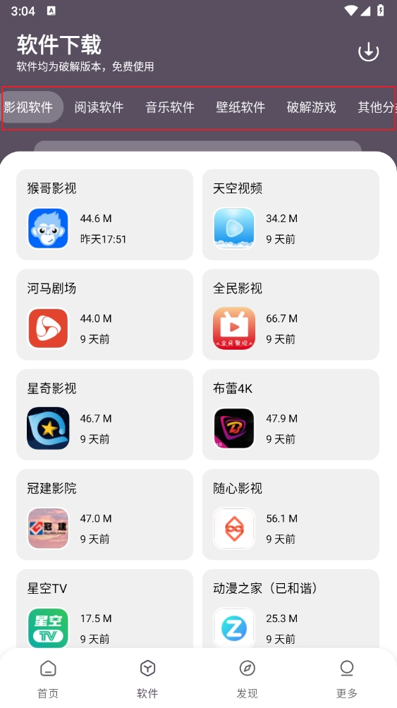 进入"软件"板块,有多个软件资源供你选择。