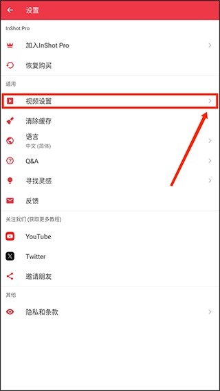 进入设置页面后,找到“视频设置”选项并点击;