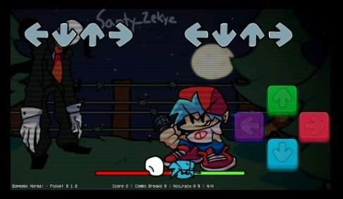 这款模组是围绕节日主题打造的全新内容,其中加入了经典恐怖角色Slenderman(瘦长鬼影)。整体画面营造出阴森诡异的氛围,角色设计与剧情都充满惊悚感,再搭配上紧张刺激的背景音效,能让玩家在音乐对战过程中体验到独特的恐怖氛围。感兴趣的玩家可以尝试游玩一下。