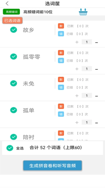 用户能够依据自身的学习安排,自主挑选想要默写的字词、语句或者篇章。