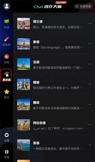 4、在翻译器界面,能够帮助用户完成荷兰语、泰语、法语、俄语、德语、阿拉伯语、英语、日语等多种语言的翻译工作。