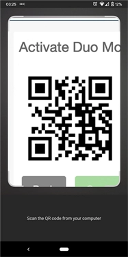 当您第一次注册 Duo,并且选择添加 Android 设备或者使用 Duo Push 功能时,系统会弹出一个 QR 码,您得借助 Duo Mobile App 扫描这个二维码,这样才能完成激活流程。