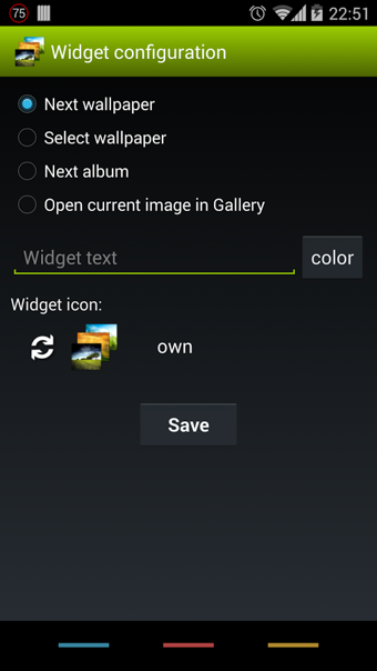 这个程序是电池的寿命和性能自动优化,因此它可能需要几秒钟后,在小工具上点击实际更改壁纸!