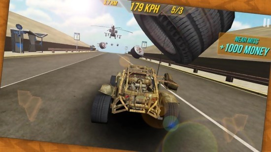 《越野赛车2014 Buggy Racer 2014》是一款赛车跑酷游戏。游戏中,玩家将驾驶一辆狂拽炫酷的越野车,躲避直升飞机的攻击。如果越野车离障碍物特别近,就会触发特效镜头,并且获得更高的分数。游戏里面的越野车看上去确实很炫酷,但是游戏玩法有点单调。
