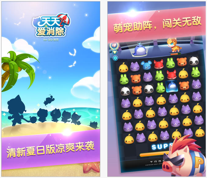 《天天爱消除》来自于萌萌星球,它是喵星星、琦琦熊等动物居民们最喜爱的游戏,只要找出3个相同的动物手拉手排一起,它们就能Happy得打滚。