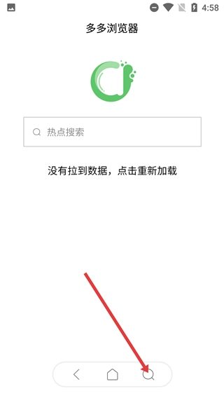 1、在多多浏览器的首页,点击底部的搜索按钮,就能进入搜索操作页面,为内容搜索做好准备。