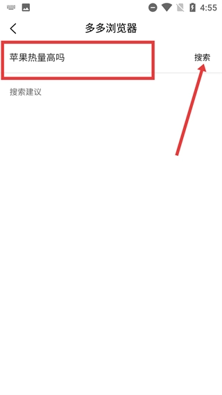2、进入搜索页面后,在搜索框中输入想要查询的内容(例如“苹果热量高吗”),然后点击搜索框右侧的搜索按钮来进行搜索操作。