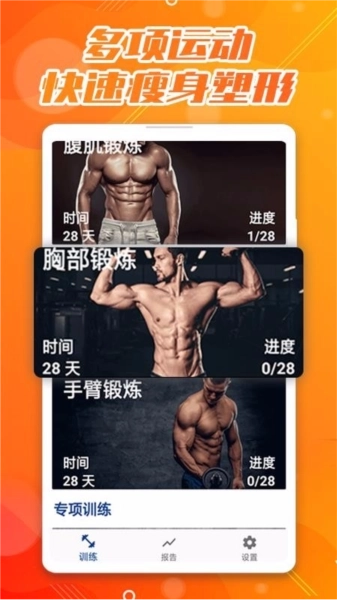 4、健身塑形,依据为每个人量身定制的科学训练方案,使身体塑形更轻松,腹肌与人鱼线不再遥不可及。