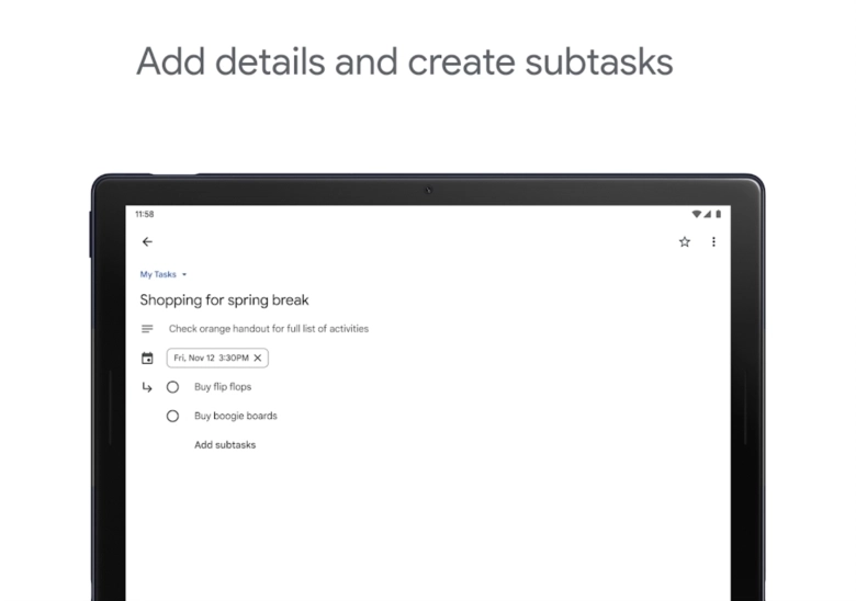 Google Tasks秉持以用户为核心的设计思路,打造出简洁直观的界面,让任务记录过程更为轻松顺畅。无论处于居家、办公场景还是出行途中,您都能迅速把脑海中的任务添加到系统里,并且随时都能调取这些信息。针对从邮件衍生出的任务,Google Tasks支持您直接在Gmail侧边栏查看,甚至能关联到对应的原始邮件。为了更高效地推动项目进展,这款应用还具备添加详细说明的功能,例如给特定任务附上备注,或者将其拆解成主任务下的子任务,这能增强任务管理的灵活度与适配性。有需求的用户,欢迎体验使用!