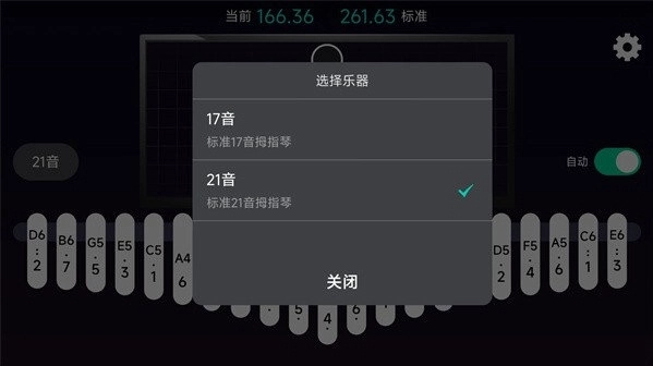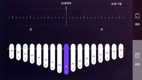 1、音拇指琴的调音界面右上角设有切换功能,可自由在标准17音与标准10音(C调)之间进行切换。