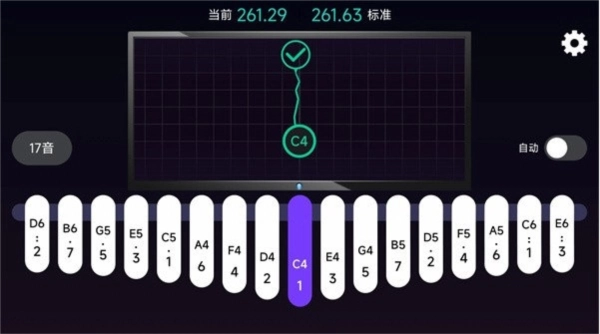 3、自动调音功能:只需拨动琴键,系统便会自动显示当前音高,让用户调音更便捷。