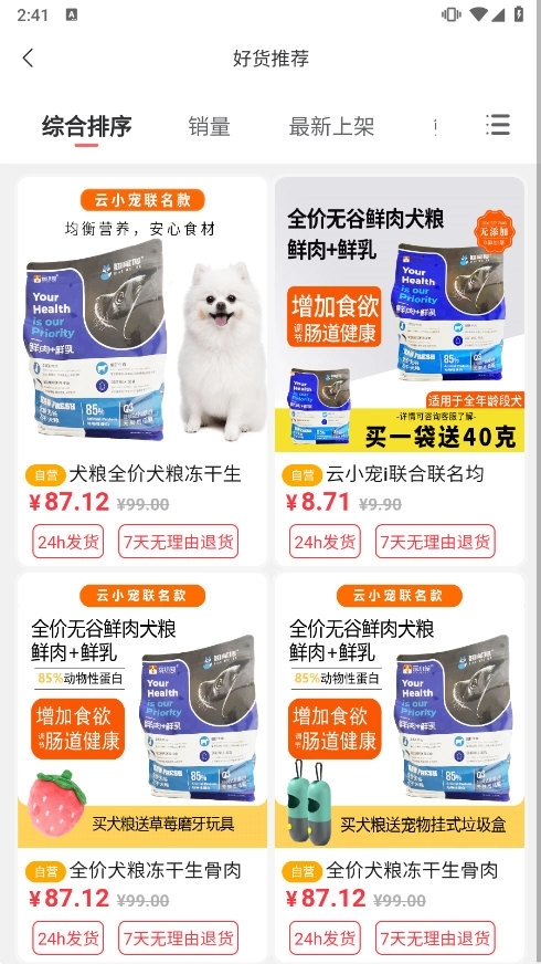 购买宠物用品:提供了丰富的宠物用品供您选择,包括狗粮、零食、玩具等。