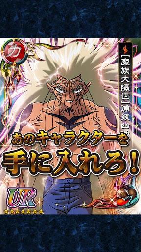 《幽游白书:魔界统一最强战斗 》是一款以人气动漫幽游白书为题材的卡牌游戏。为了自己的梦想,向对手发起挑战,把全部队手打到,完成魔界的统一吧。收集强力的卡牌,不断挑战强力的敌人,向自己的目标踏出一步。《幽游白书》的故事,从 14 岁的不良少年浦饭幽助因为车祸身故开始,由于生死簿判断他阳寿未尽,所以受到灵界地府的委託,化身为灵界侦探而在现世重生,打击世间的妖邪。这款《幽游白书~魔界统一最强战》大量採用了原作的故事内容,配合质感十分接近动画版本的过场画面
