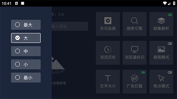 百科浏览器TV版是一款非常好用的浏览器软件,这款软件提供了非常好用的搜索功能,你可以非常方便的浏览各类网站,搜索各种信息,软件可以自动拦截广告,界面简洁清晰,还可以调整文字大小。