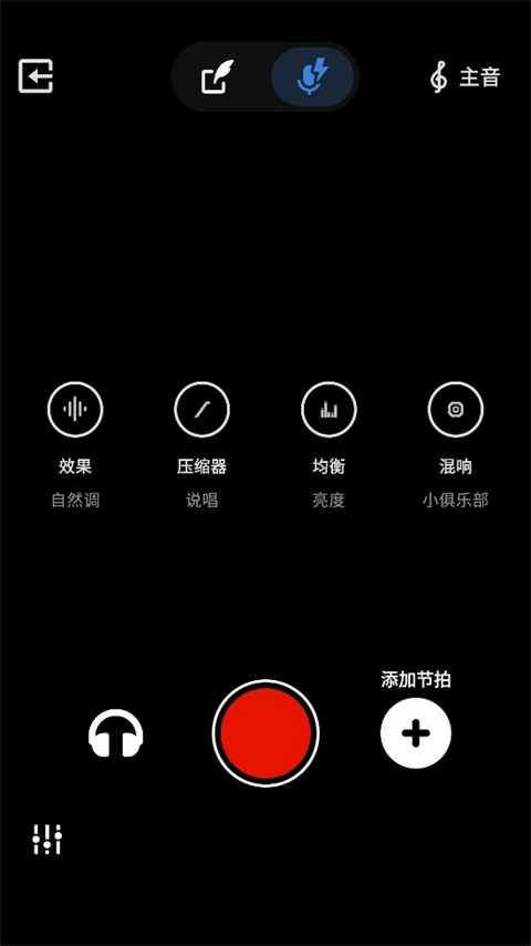 进入录音室后,您只需轻触屏幕顶部中央标有“音频”与“视频”的切换按钮,就能在音频录制和视频录制这两种模式之间进行切换。