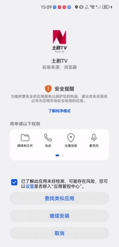 3、第三步,点击勾选“已了解此应用未经检测……”,然后再点击“继续安装”。(出现安全提醒,不用惊慌)