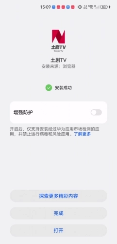 5、最终,出现绿色对号,说明“安装完成”,点击打开,即可体验。