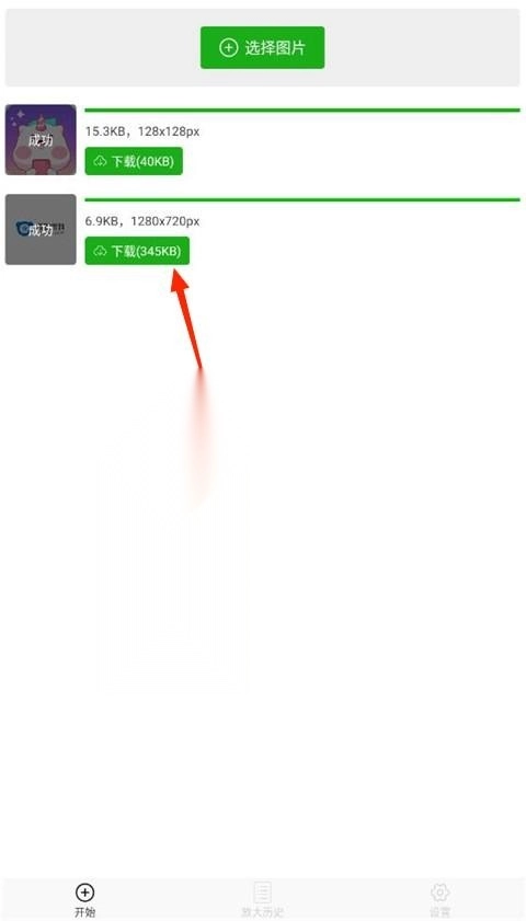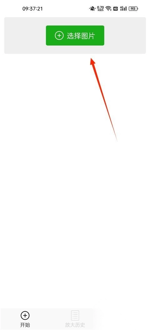 1、启动软件,点击“选择图片”按钮,在手机相册中挑选一张需要放大的图片