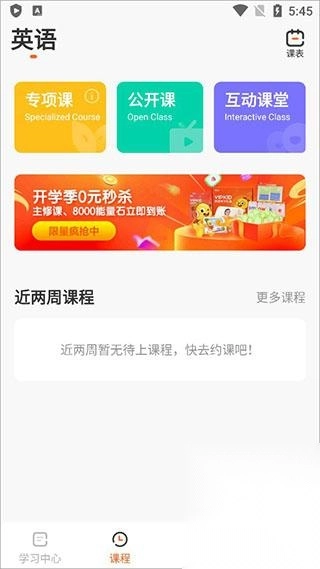 4、返回首页,点击课程,分别为专项课、公开课、互动课程,以及近两周自己的课程;