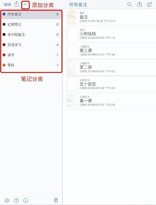 打开则是笔记管理界面,可以对笔记进行分类管理