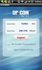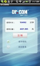 用于移动终端登录Dr.COM 2166系列接入网关,成功登录后可查看当前计费周期内的已使用时长和流量信息,并可保存密码和设置成自动登录。注意:需要运营商启动本功能。