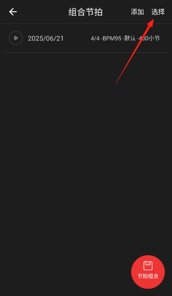 2、进入【组合节拍】界面后,能看到已添加的节拍,点击【选择】按钮即可。