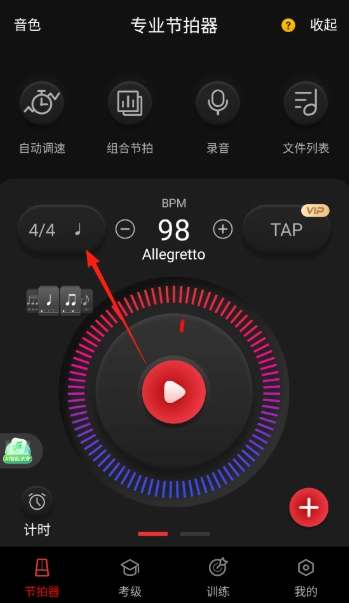 点击左侧的节拍调整按钮(例如`2/4`、`3/4`、`4/4`这类选项),挑选一个合适的拍号。