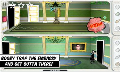 间谍大战Spy vs Spy是Chillingo开发的一款整蛊类游戏。以美式刻画的人物黑白间谍便是游戏的主人翁了。玩家需要扮演黑白间谍中的一位,在一栋复杂的房间内搜集逃脱物品,同时不同阵营的黑白间谍也不会互相帮助,要尽可能的给另一方捣乱,最终逃离大使馆。