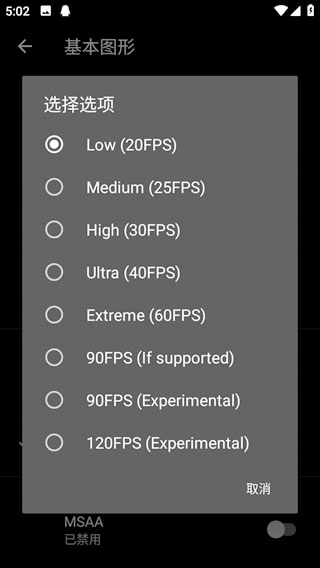 3、点击FPS,进入FPS帧数设置,页面如下;