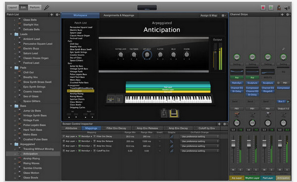 终极现场演出装备使用 80 多种乐器、效果和 MIDI 插件进行现场演奏,或运用 Audio Units 插件进行工作