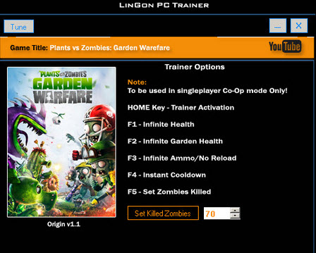 植物大战僵尸花园战争修改器+5 v1.1 绿色版 植物大战僵尸花园战争修改器是游戏植物大战僵尸花园战争的一款游戏辅助修改工具,本次为大家带来的有五项基本功能的修改,能帮助玩家大大降低游戏的难度,让玩家玩的更加尽兴。