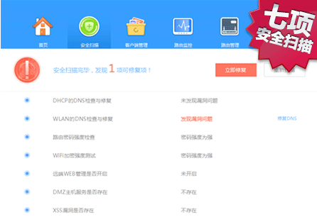自动扫描路由器是否存在安全漏洞并自动修复。避免因存在漏洞导致WiFi遭受黑客攻击,导致个人隐私信息被盗及财产丢失。