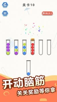 这款游戏采用简洁画风设计,关卡类型丰富多样,操作上手十分简单,适合各个年龄段的玩家体验,游戏内容也颇为充实。要是您在某个关卡遇到困难,既可以选择重新开始挑战,也能直接跳过该关卡。游戏的玩法模式操作简便,您能够操控水瓶倒入不同种类的液体,使液体呈现出各异的色彩变化。此外,游戏还提供多种排序方式,海量关卡可供玩家尽情体验。