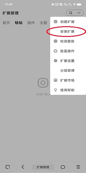 然后点击右上角的三个点,选择“扩展”;
