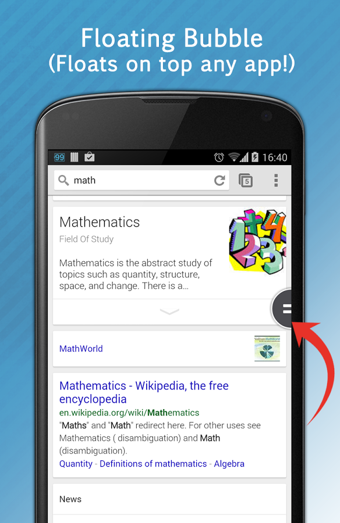 与浮动搜索您可以轻松地从您的设备上的任何地方在网络上搜索。