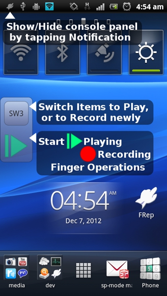 - 记录和重放/重复/编辑触摸屏和/或键盘的操作- 对当前应用程序简易录制/播放,按下浮控制台的按钮