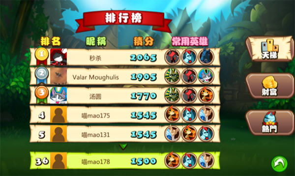数十位喵喵英雄大集结,每位英雄都拥有专属的英雄技能,及独特的天赋!