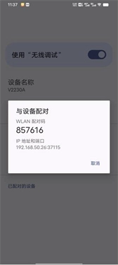 下滑手机顶部的通知中心,输入配对码后,点击小三角形图标来展开完整对话框。