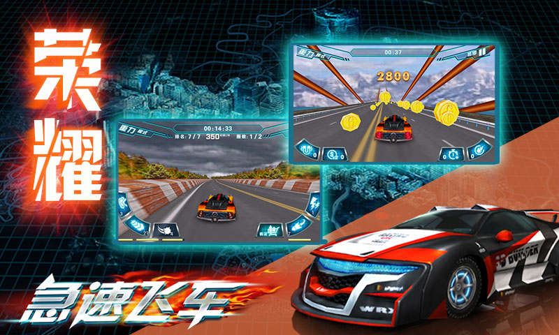 急速飞车3D效果的赛车和跑道立体感十足,细节清晰,画面精细,给人的视觉冲击比较强烈。不同跑道也非常具有特点,比如恐怖的连续发卡弯,崎岖不平的山路,港口公 路等等,各种路面带来的驾驶反馈也全然不同,可以看出制作小组的用心程度。哪怕相同的跑道,也并非是一成不变的,有白天、夜晚、雨天之分,总之尽管跑道数 量不算庞大,但是场景的巧妙设计很好的弥补了这一点。多达14个世界关卡,每个世界关卡中还拥有3个不同赛制的玩法,让你体验到不一样的激情。多样丰富的道具升级系统让战斗充满了乐趣。