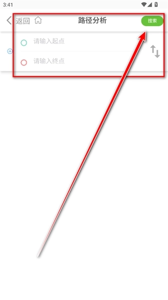 7.完成新手教程之后,点击首页上方的搜索框,输入目的地地,即可得到相对应的路线。