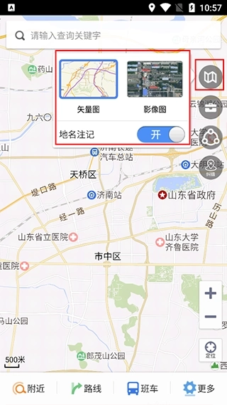 1、强大的地图功能:提供了全面的山东省地图数据,包括城市地图、县区地图、村庄地图等,可以实现多种地图浏览模式,并且可实现地点标注、收藏、分享等操作。