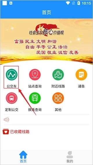 1、进入软件后,首先在首页中点击“公交车”