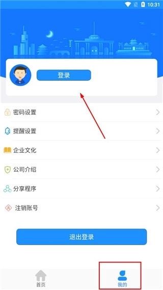 1、并安装马鞍山掌上公交,打开进入点击底部的“我的”,点击登录按钮