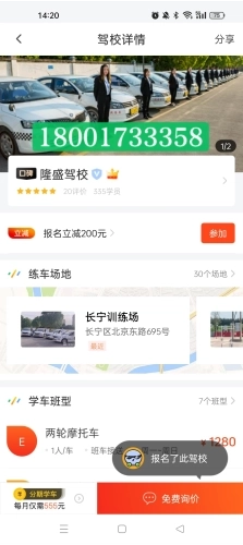 1)明星驾校:我们对合作的所有驾校都进行了严格筛选与人工审核,能帮你避开“黑驾校”的坑。